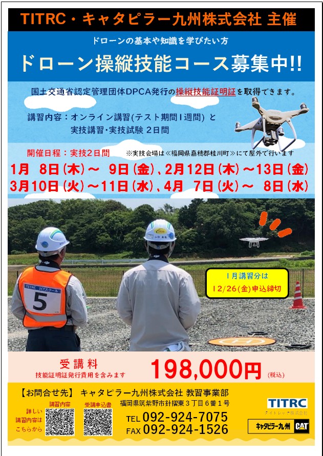 TITRC・キャタピラー九州では、毎月「ドローンICT講習」を開催いたします!!