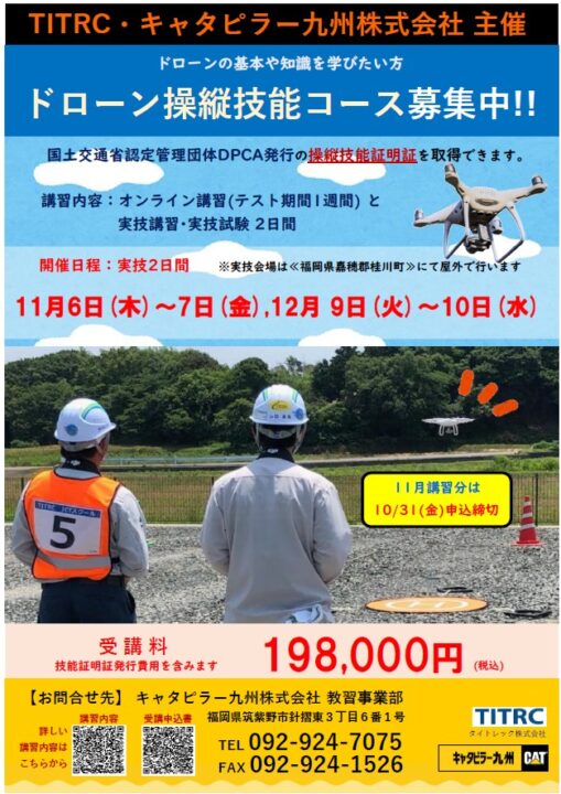 TITRC・キャタピラー九州では、毎月「ドローンICT講習」を開催いたします!!