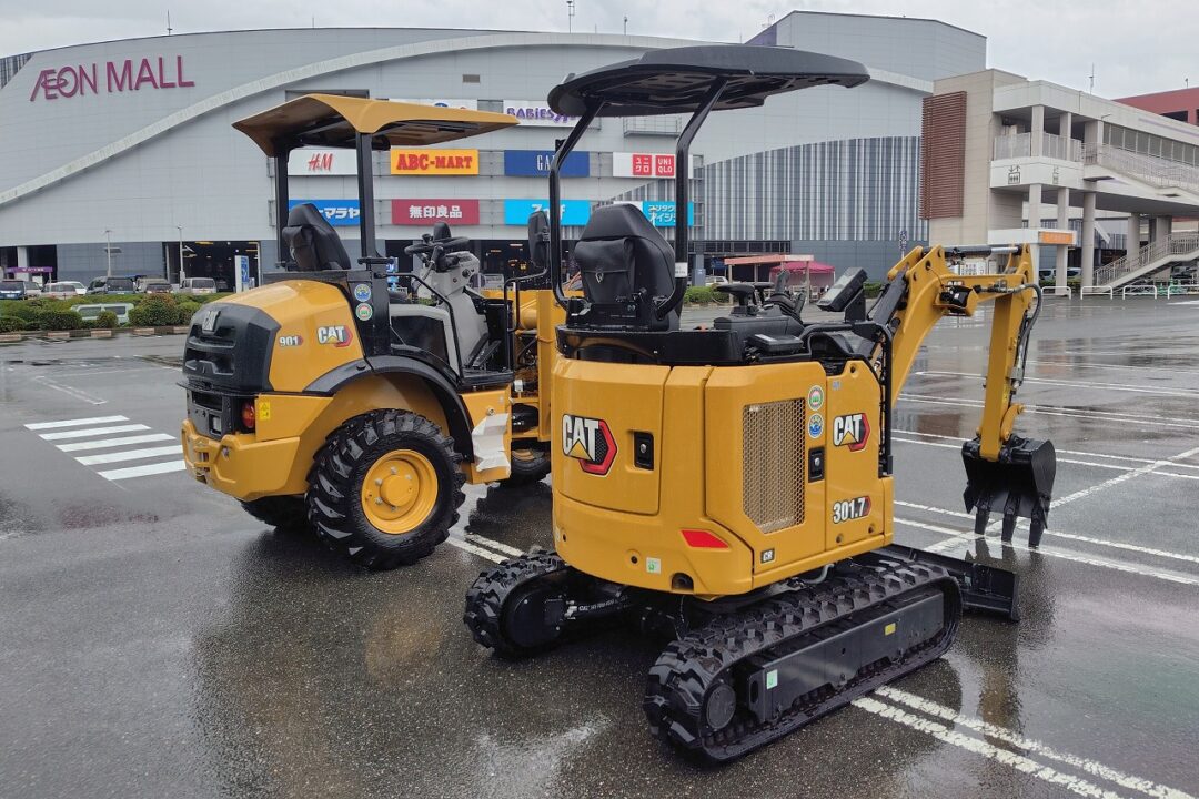 【展示車両】左:901 ホイールローダ、右:301.7 ミニ油圧ショベル