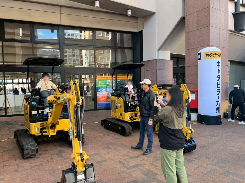 実際のミニ油圧ショベルを間近で見られるチャンスに、操作席に座って写真を撮る方も多くいらっしゃり、子どもたちも大興奮でした👦👧